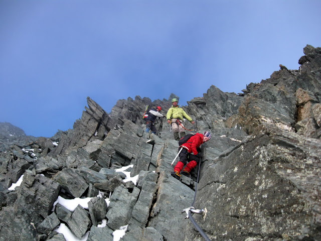 Mellesleg megjegyzem, hogy mi, koca-hegymászók (Gina, Pietrele, jómagam) mindhárman arra készültünk, hogy kemény dolog lesz, de azt nem gondoltuk volna, hogy ennyire. Mindazonáltal megoldottuk a feladatot különösebb gond nélkül, szerintem négyes alára, ami nem rossz első menetre. És nem bántuk meg, sőt! De nehéz volt, nagyon nehéz, fizikailag és pszichésen egyaránt. Életem legkomolyabb sportteljesítményeként tartom számon. Nem is ragozom tovább, mert olvastam egy beszámolót a Glocknernél lényegesen könnyebbnek tartott Grossvenediger megmászásáról s ott a szerző egy mondatban, ám igen szemléletesen fogalmazta meg a lényeget: "A Balaton-átúszás kutyafasza egy ilyen kiránduláshoz képest." És ez mindent elmond.