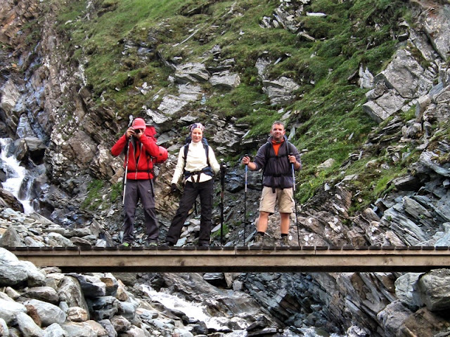 Mögöttünk, a völgy fölött most az egész út során ott leskelődik a Glockner. Bezzeg, felfelé jövet nem mutatta meg magát, Talán jobb is, így nem volt mód megijednünk tőle...