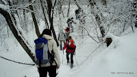 Viccelődve, jókedvűen indulunk felfelé a hegyre. Amint kiérünk a Nagymarosról egy sziklafalon méteres jégcsapokat pillantunk meg. Egyik másik 6-8cm vastag és másfél méter hosszú. Íme a tél egyik varázslatos szépsége. A tájat 20cm hó fedi, a csordogáló víz pedig áttetsző oszlopokat formáz.