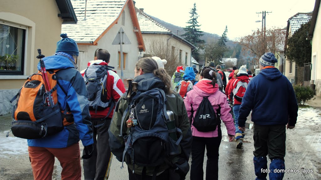 Dömös kistemplom kora reggel. Téli szeles idő fogad, amint lelépünk a buszról egyből bevetjük magunkat a kocsmába. Szokásos reggeli kaffe, sör, túrajelentés kitöltés meg ilyenek! Fél órát időzünk, mivel már nagyon mehetnékünk van nekivágunk. A Rám szakadék felé indulva Cseta hirtelen megkérdezi. Nem ezen a hídon kell átmenni? Ez nem a mi hidunk. De a GPS szerint… nos ha GPS ezt mondja… Hééé… hátra arc! Itt megyünk át! Az eleje nagy szemekkel néz rám, mi a francért itt megyünk át. A csapat egy része átballag a hídon, a meglepetés a túloldalon várakozik.