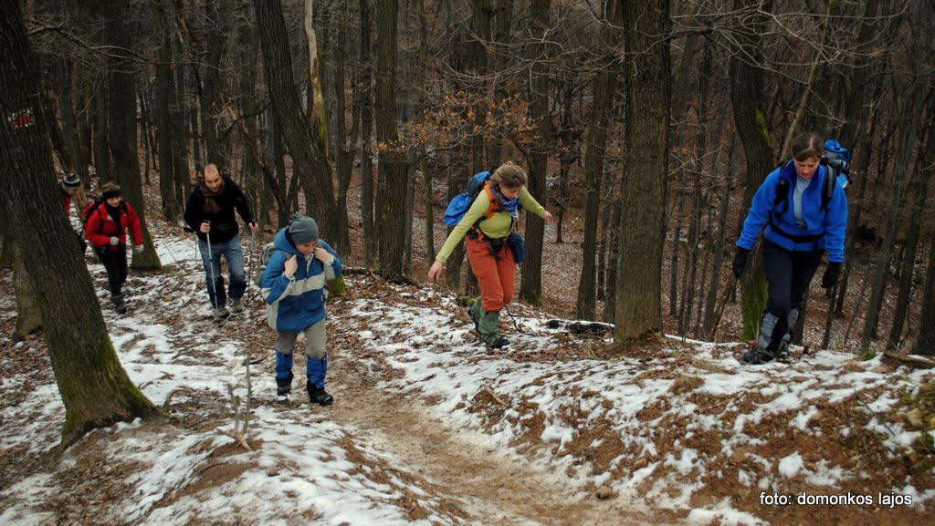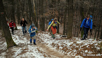 Szerelvényigazítás, és kezdődik a kaptató. Pár centi hó teszi izgalmasabbá az utat felfelé a Vadálló kövek felé. Két kilométer és 500m szint Prédikálószékig.