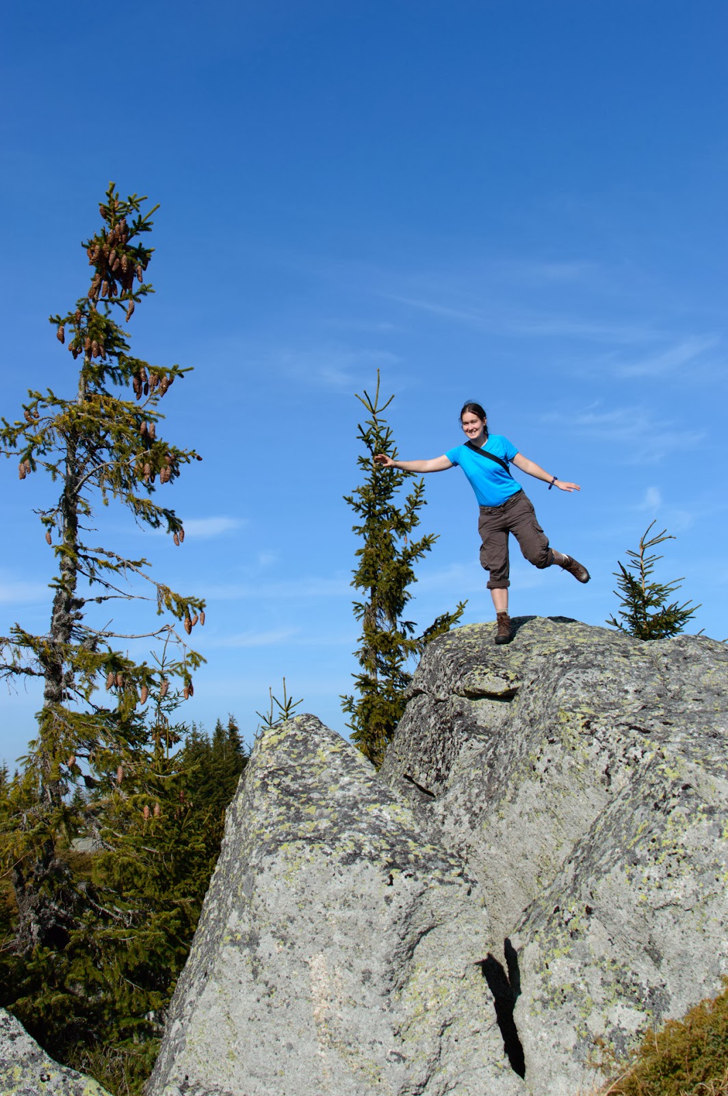 Reggel korán kelve, táborbontást követően elindultunk az Apró-kövek felé, először a kék kereszt jelzés mentén, majd azt egy nyeregben elhagyva, a gerinc vonalát követve. A gerincen futó út sokáig jól követhető volt, majd hirtelen véget ért egy irtáson. Innen minimális keresgéléssel, egy keskeny erdősávon átvágva Ákos és János találtak egy újfent gerincvonalban futó, láthatóan sokat használt és kiszalagozott utat, ami látszólag számunkara a legjobb irányba vezetett – és valóban. Kis kerülővel felvitt az Apró-kövekhez, ahonnan elérve a tulajdonképpeni csúcsot, csapatunk szétvált. Már itt érezhető volt, hogy Judittal nem bírjuk a többiek tempóját: nekem egész kevés cuccom volt, csak a 4 napi ételt, egy polifoam-ot és a fényképezőgépemet vittem, de így is elég lassú voltam; Judit vitt minden mást, a sátrat is beleértve, ami eléggé lelassította, de ennek ellenére zokszó nélkül cipekedett!