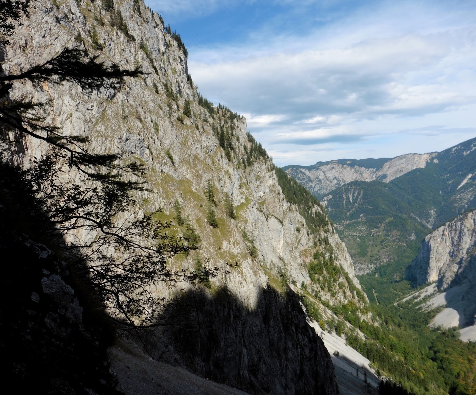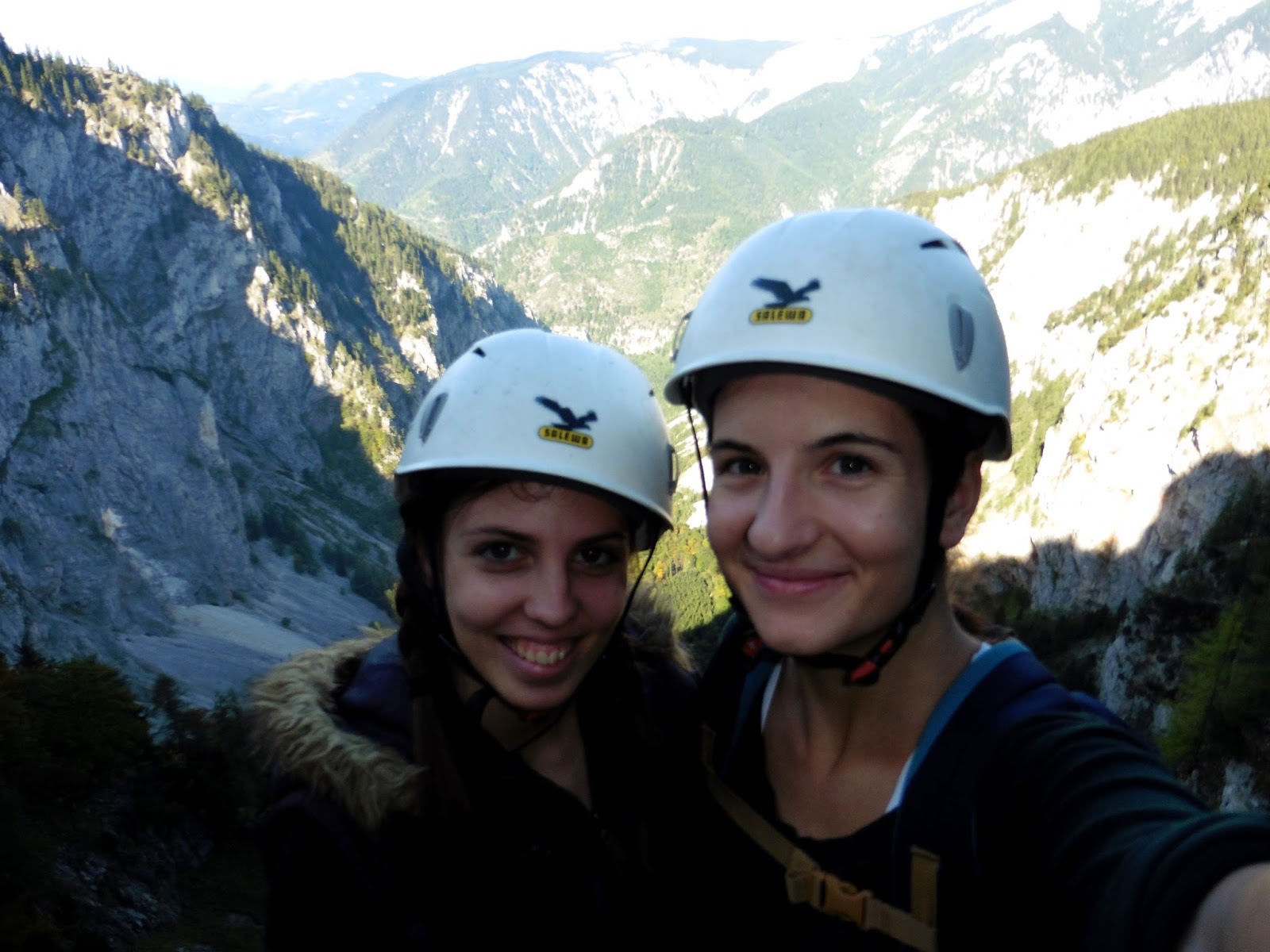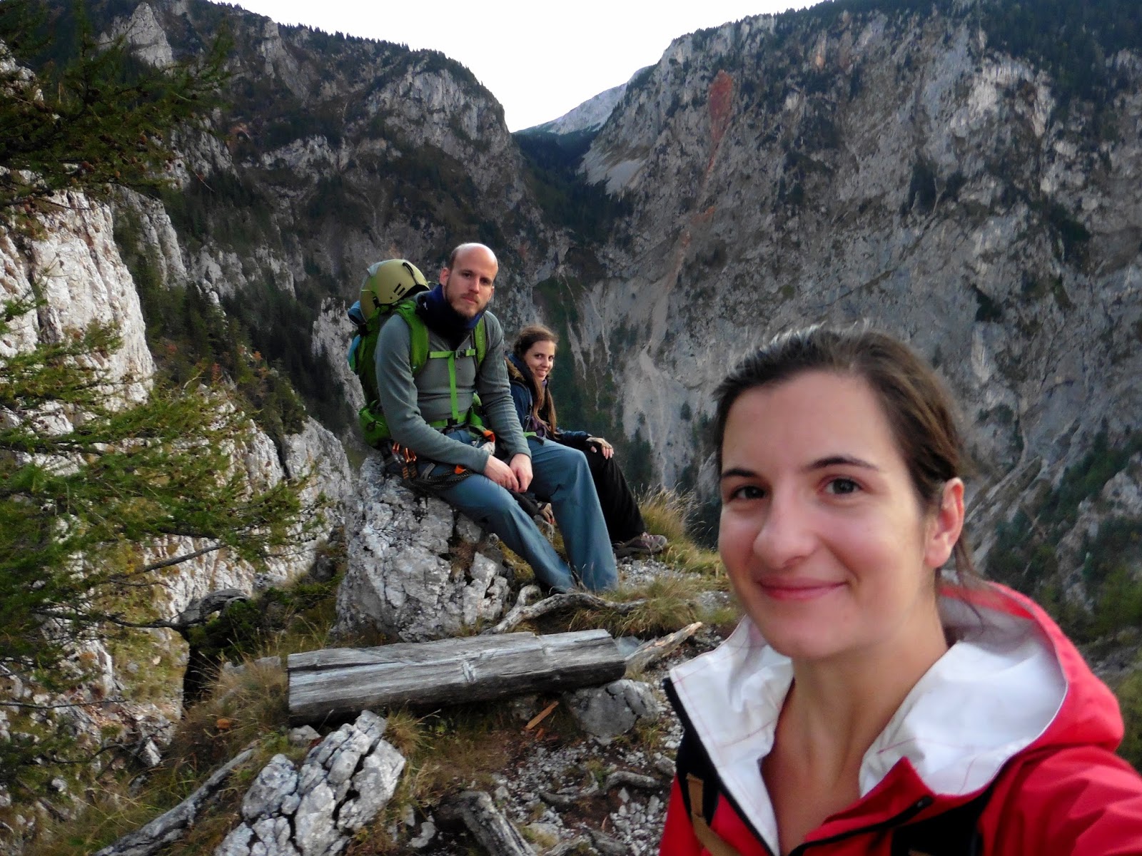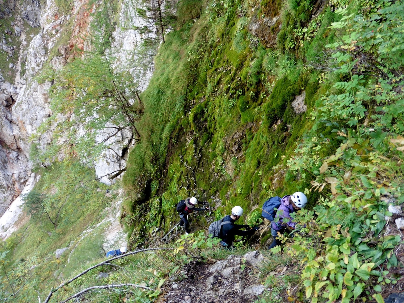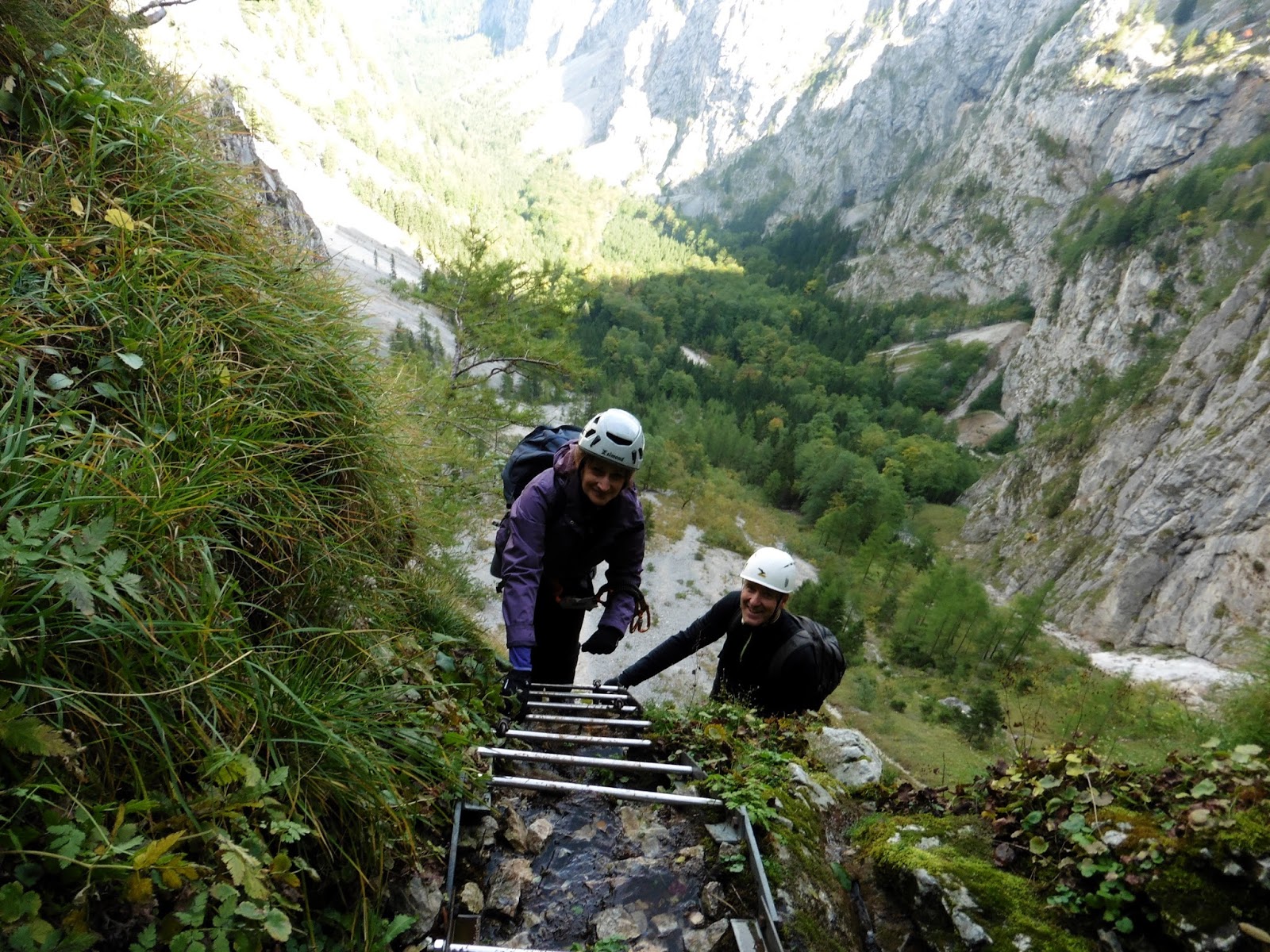 Itt két csapatra osztódtunk: Süni és Nyuszi csapatra. A Süni csapat (ebben voltam én is), a Gaislochsteigen kezdtünk, utána traverzben haladtunk a Gustav-Jahn-Steigen, majd becsatlakoztunk az Alpenvereinssteigbe, amint a Nyuszik is mentek. Miután megkaptuk bérelt felszerelésünket, az első nagy hajrával el is tévedtünk. Szerencsére nem bóklásztunk sokat, haladtunk a GPS szerint.