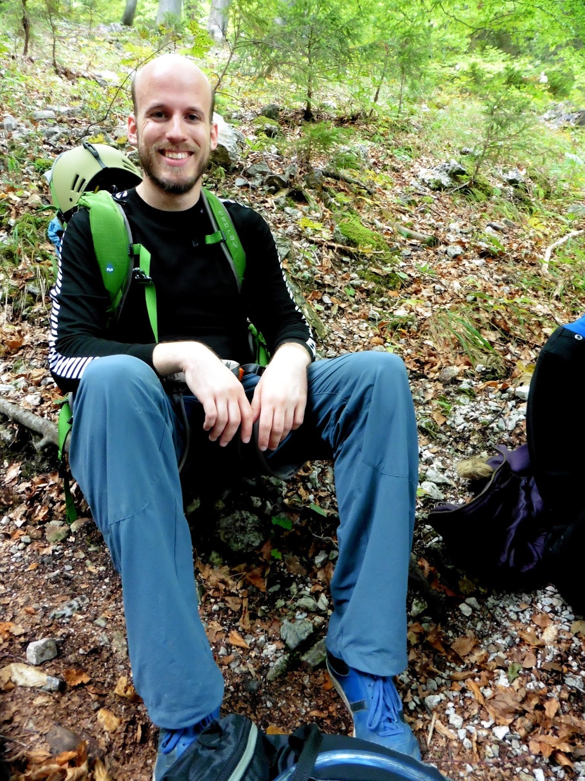 Az út a beszállásig másfél óra, meredek és izzasztó kirándulás volt. Az egész megpróbáltatás egy öltözködés volt. Amikor melegünk lett, levetkőztünk, de a sok megállás miatt, mindig vissza kellett venni a pulcsit, aztán megint le és megint vissza és így ment végig. Miután vért hörögve, a törmeléklejtőn csúszkálva és kőlavinát zúdítva a másik fejére, fáradtan és kimelegedve elértük a beszállást, egy rövid pihenőt tartottunk, ahol bevártuk a lemaradókat, felvettük a mászófelszerelést, kesztyűt, beülőt, sisakot és szépen sorban elindultunk az úton.